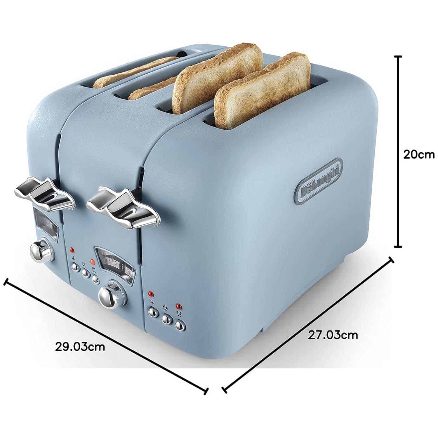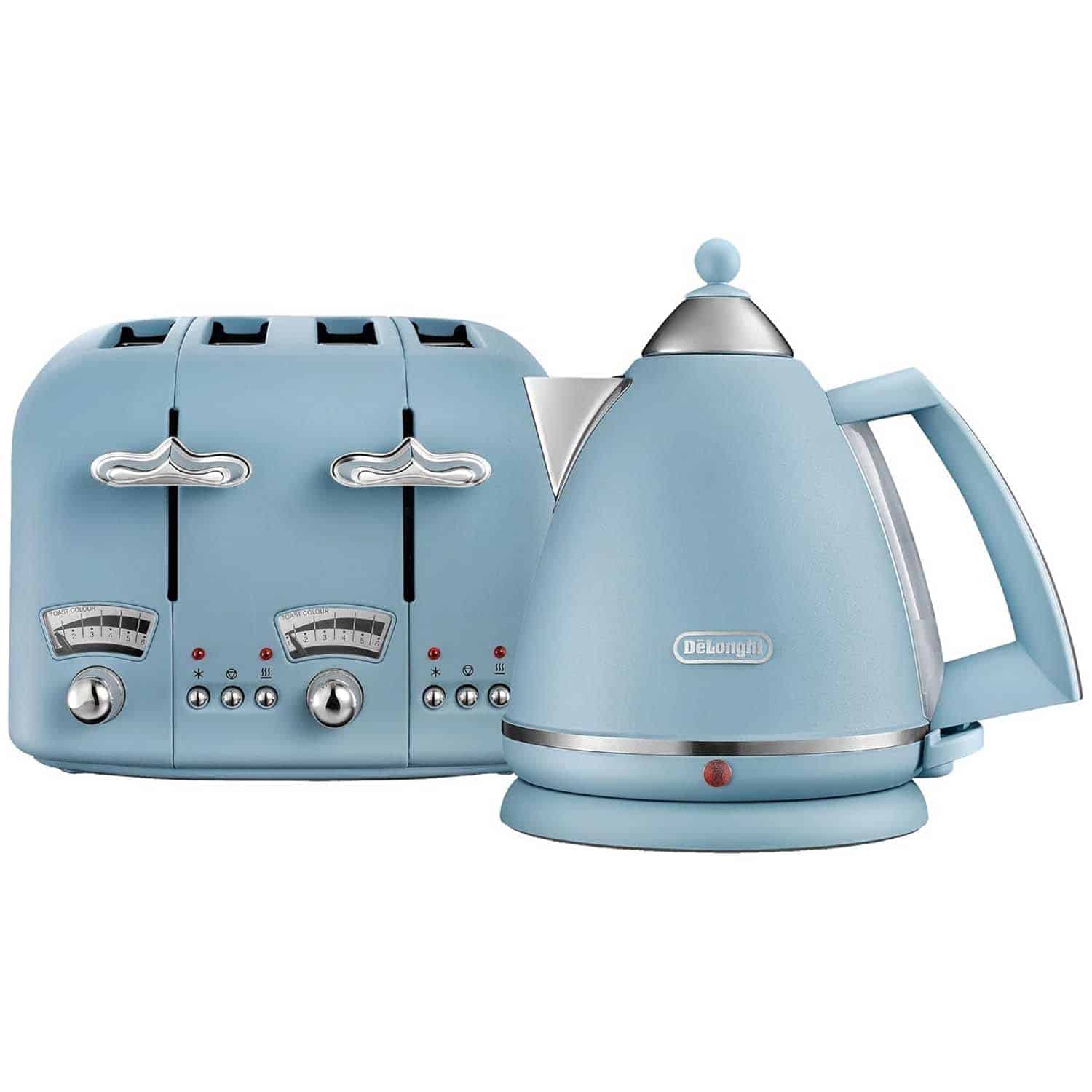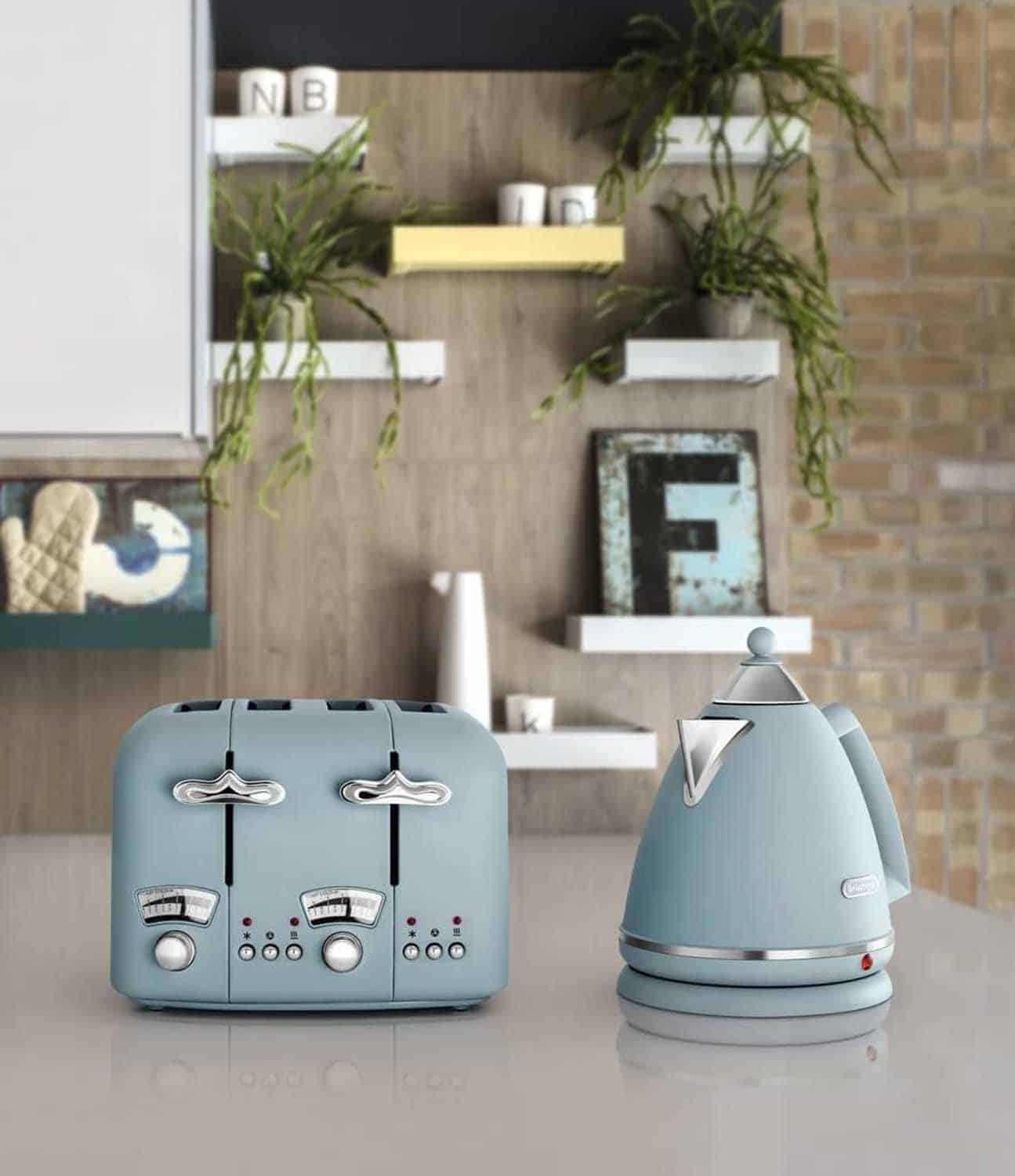 De’Longhi Argento Flora Azure Set – Stylish 4-Slice Toaster & 1.7L Kettle Breakfast Set