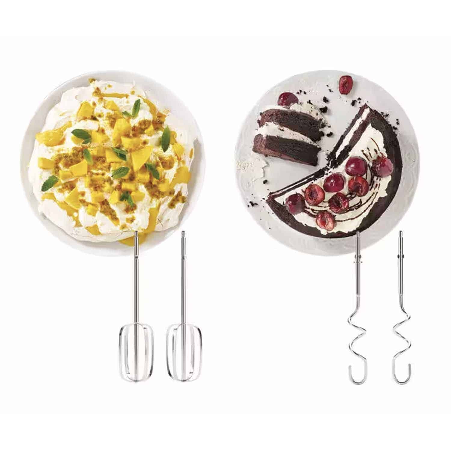 - 5 Speeds makes light work of all folding mixing and whiskingStainless steel beaters and kneaders included non degradable for durability and strength