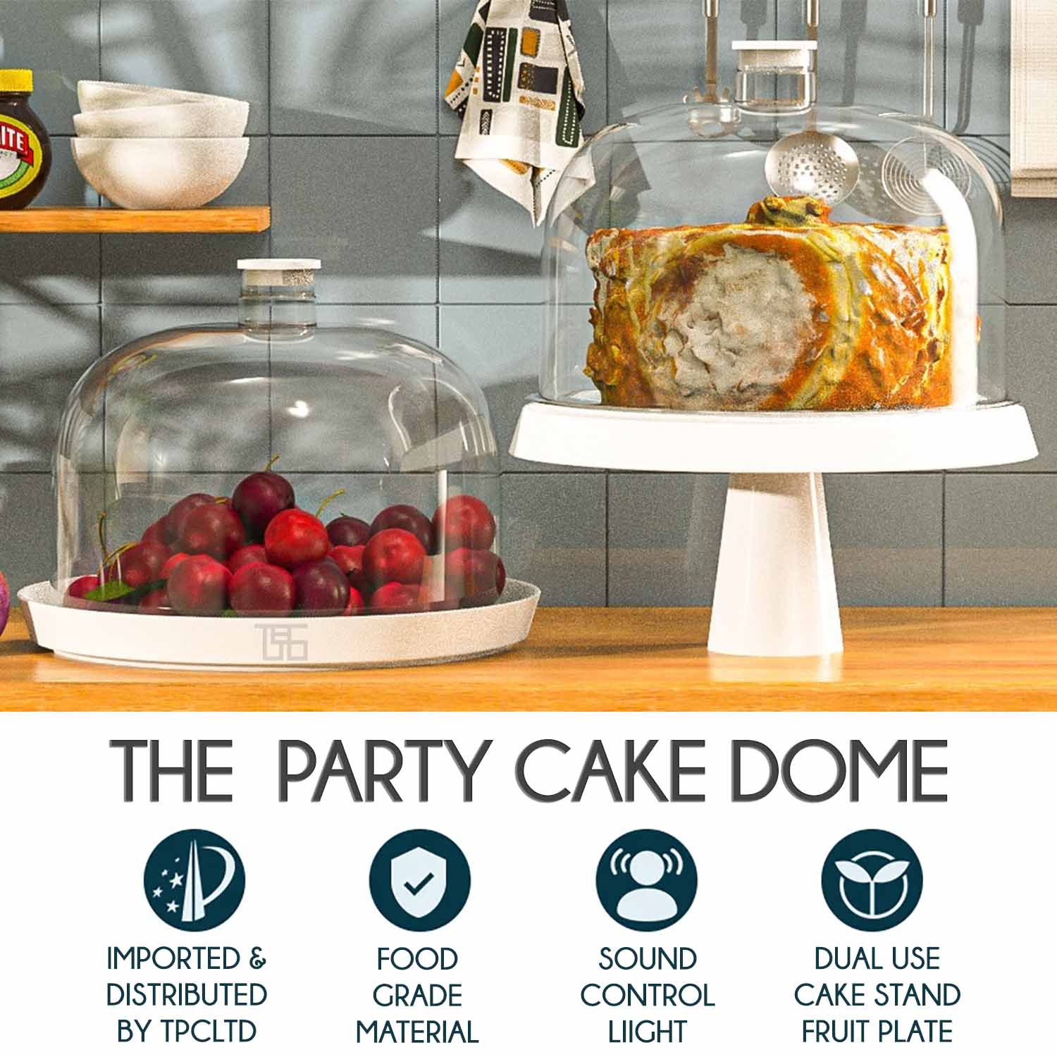 The Party Cake Dome can be used as a Cake Stand or a Fruit Plate. Just remove the stand and flip the base for fruit or any other treat.
